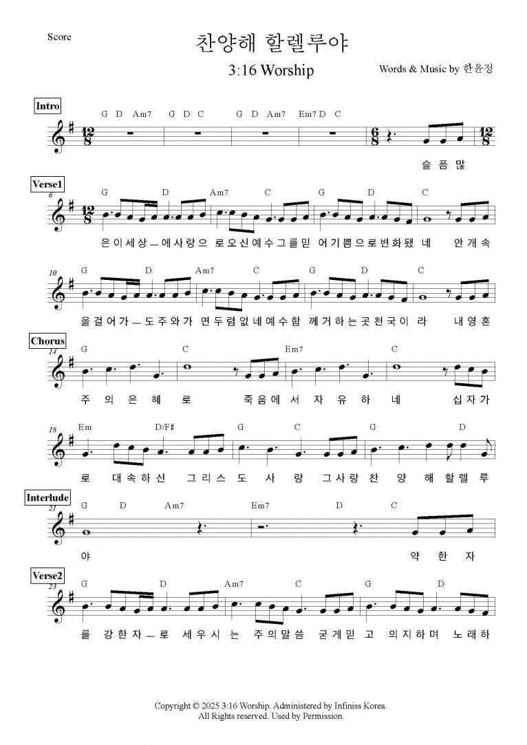 [MV,악보] 찬양해 할렐루야 - 3:16 Worship (Sanctification)