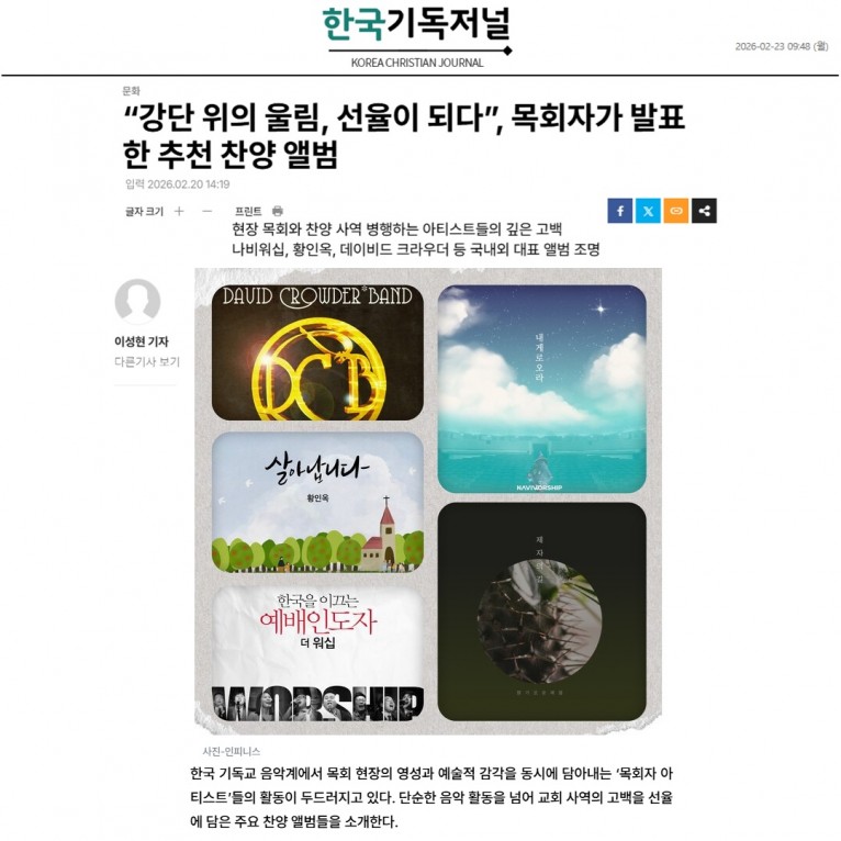 뮤직타임 [기획기사] “강단 위의 울림, 선율이 되다”, 목회자가 발표한 추천 찬양 앨범(한국기독저널)