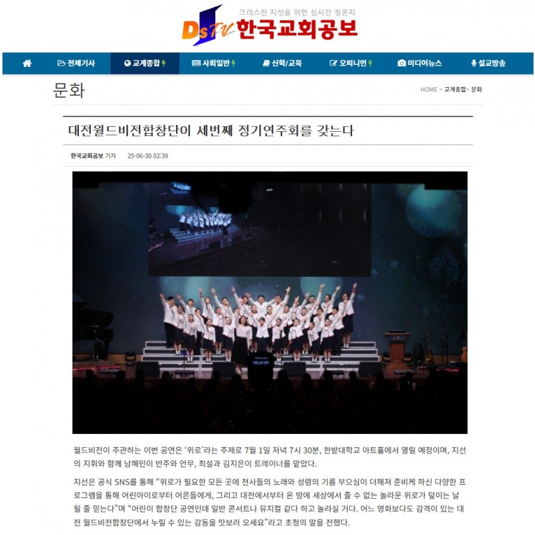 뮤직타임 [기사] 대전월드비전합창단이 세번째 정기연주회를 갖는다(한국교회공보)