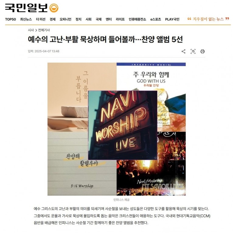 [기획기사] 예수의 고난·부활 묵상하며 들어볼까···찬양 앨범 5선(국민일보)
