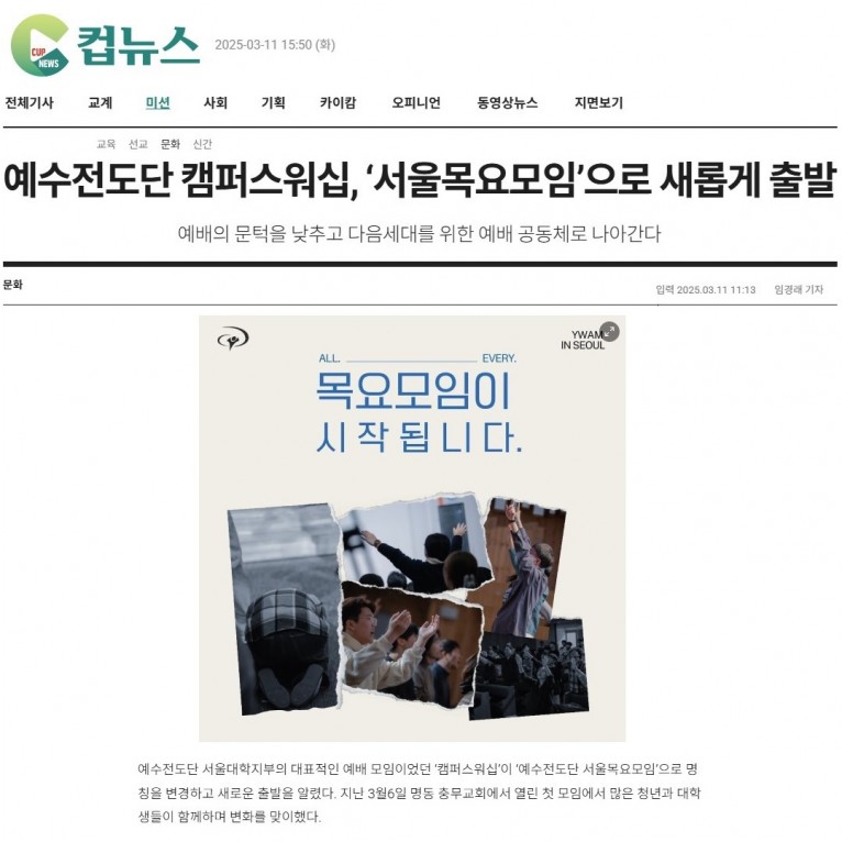 [기사] 예수전도단 캠퍼스워십, ‘서울목요모임’으로 새롭게 출발(크리스챤연합신문)