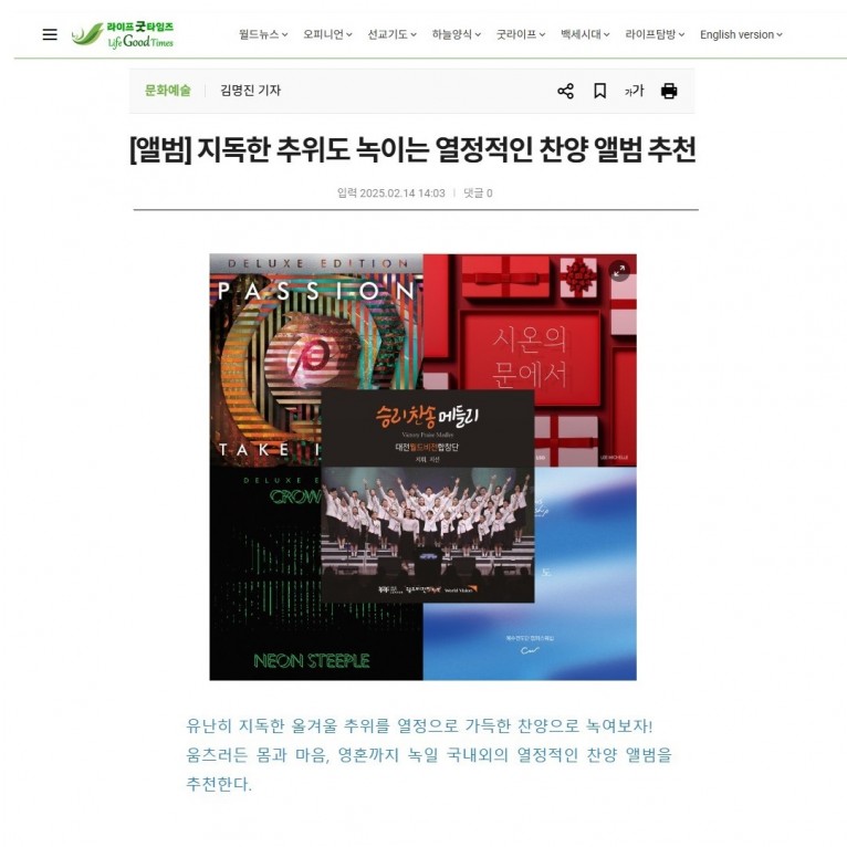 [기획기사] 지독한 추위도 녹이는 열정적인 찬양 앨범 추천(라이프굿타임즈)