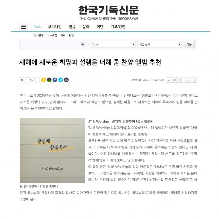 [기획기사] 새해에 새로운 희망과 설렘을 더해 줄 찬양 앨범 추천(한국기독신문)