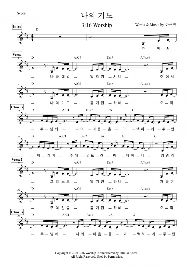 [악보][MV] 나의 기도 - 3:16 Worship