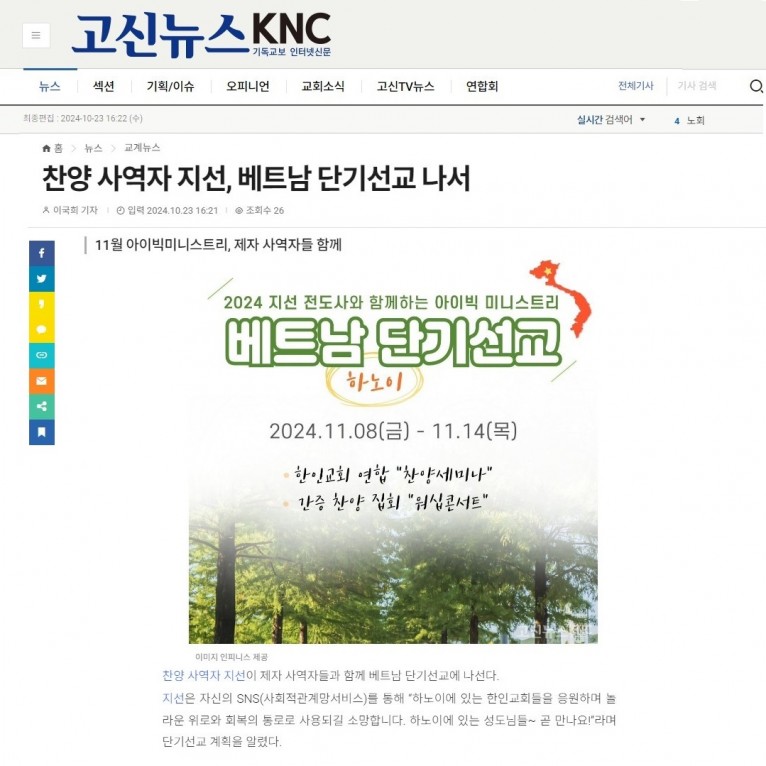 뮤직타임 [기사] 찬양 사역자 지선, 베트남 단기선교 나서(고신뉴스 KNC)