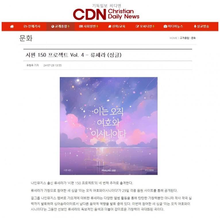 [기사] 시편 150 프로젝트 Vol. 4 - 류세라 (싱글)(기독일보 씨디엔)