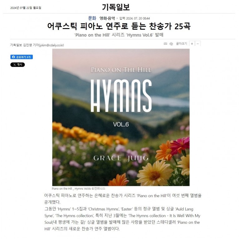 [기사] 어쿠스틱 피아노 연주로 듣는 찬송가 25곡(기독일보)