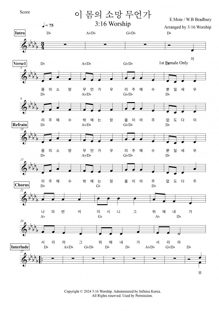 악보출처 https://shorter.me/5wRsm (3:16 Worship 구글 드라이브)