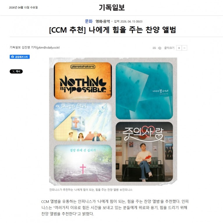 [기획기사] CCM 추천, 나에게 힘을 주는 찬양 앨범(기독일보)