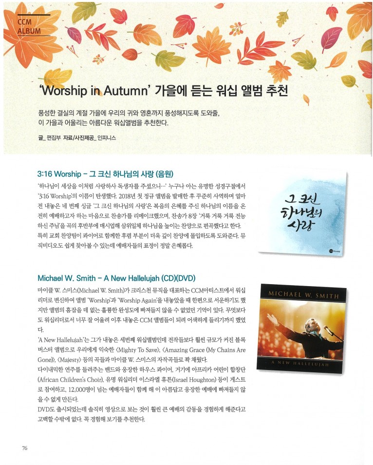 뮤직타임 [잡지] 'Worship in Autumn' 가을에 듣는 워십 앨범 추천(월간 Church Media 11월호)