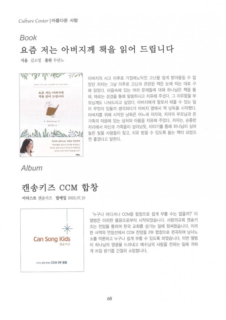 [잡지] 캔송키즈 CCM 합창 (월간 아름다운 사람 2023년 8월)