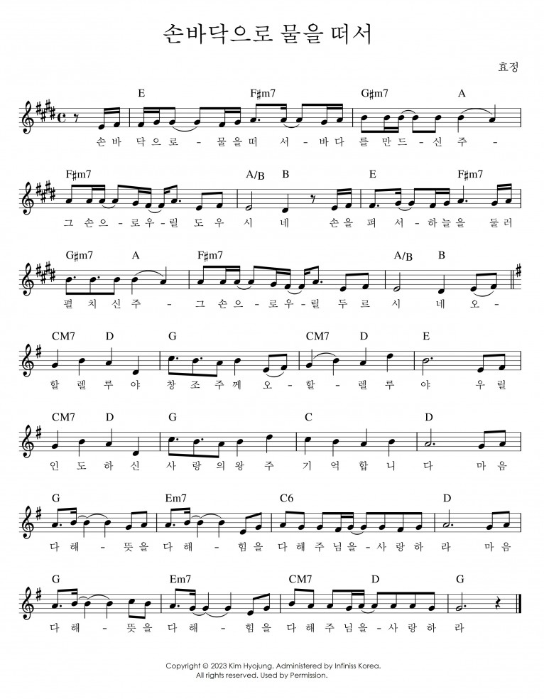 뮤직타임 [악보] 손바닥으로 물을 떠서 - 김효정