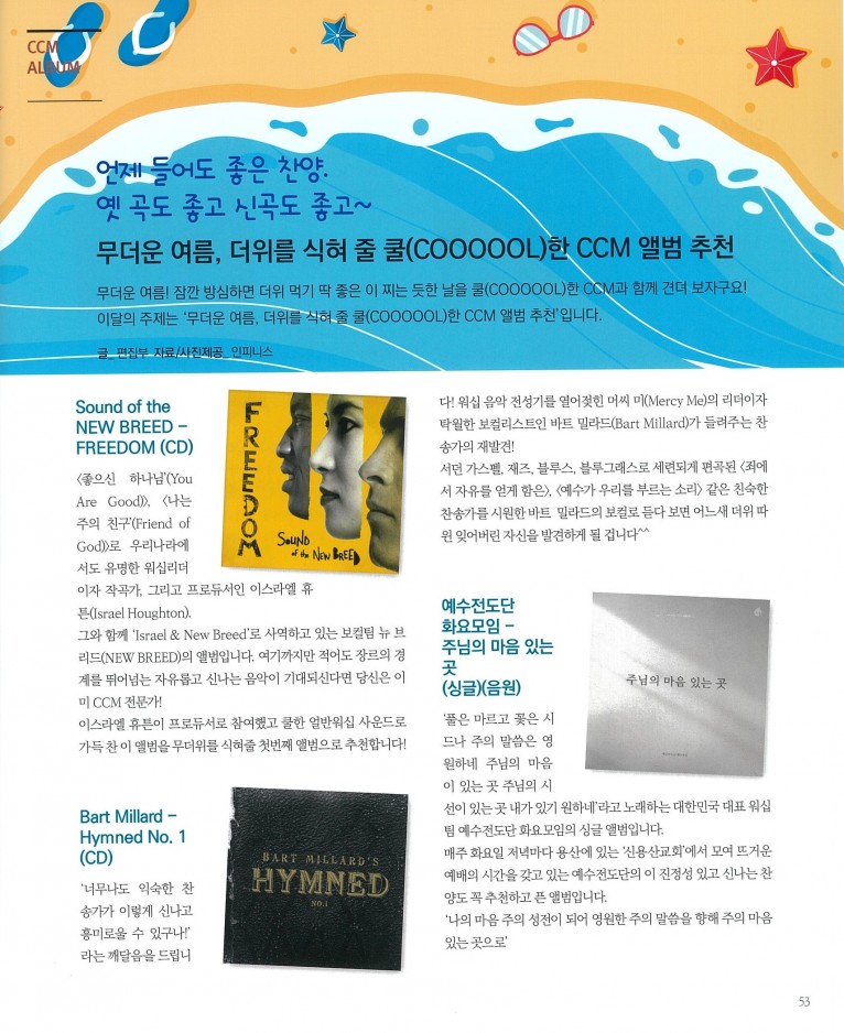 뮤직타임 [잡지] 무더운 여름, 더위를 식혀 줄 쿨(COOOOOL)한 CCM 앨범 추천(월간 Church Media 7월호)