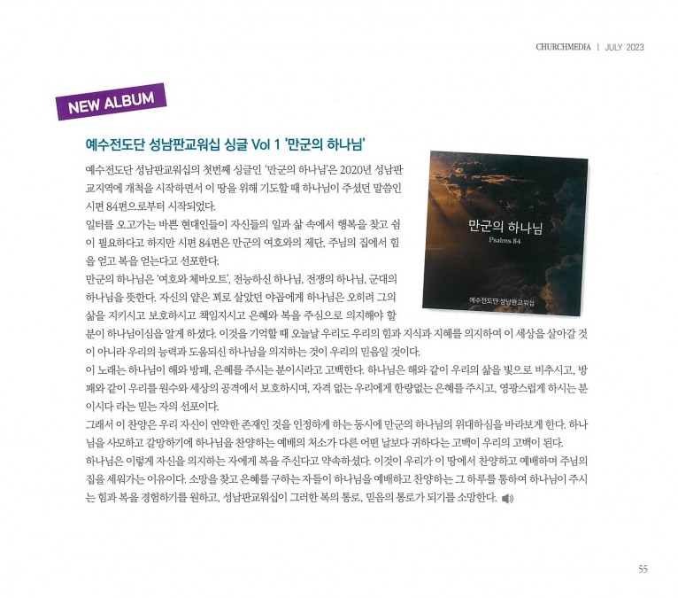 [잡지] 예수전도단 성남판교워십 싱글 Vol 1 '만군의 하나님'(월간 Church Media 7월호)
