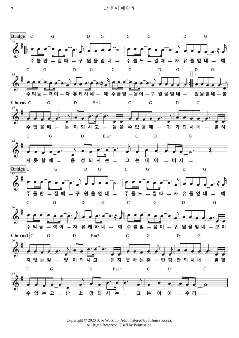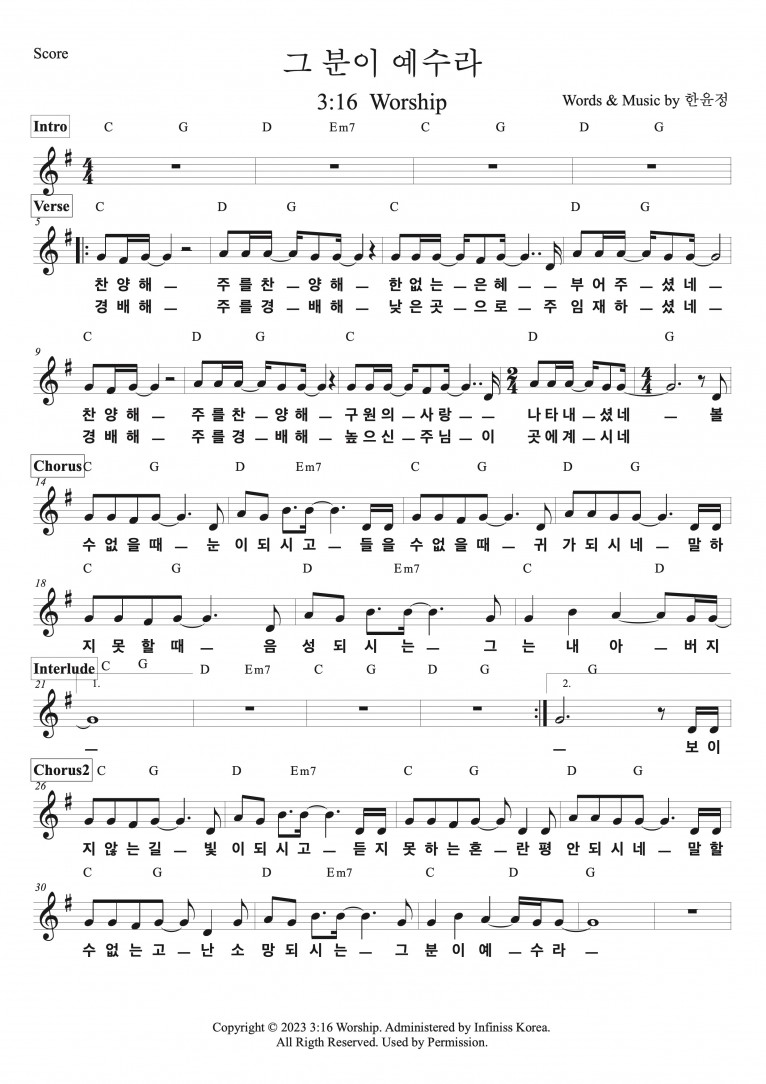 뮤직타임 [악보] 그분이 예수라 - 3:16 Worship