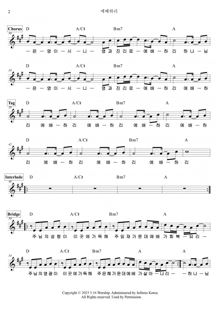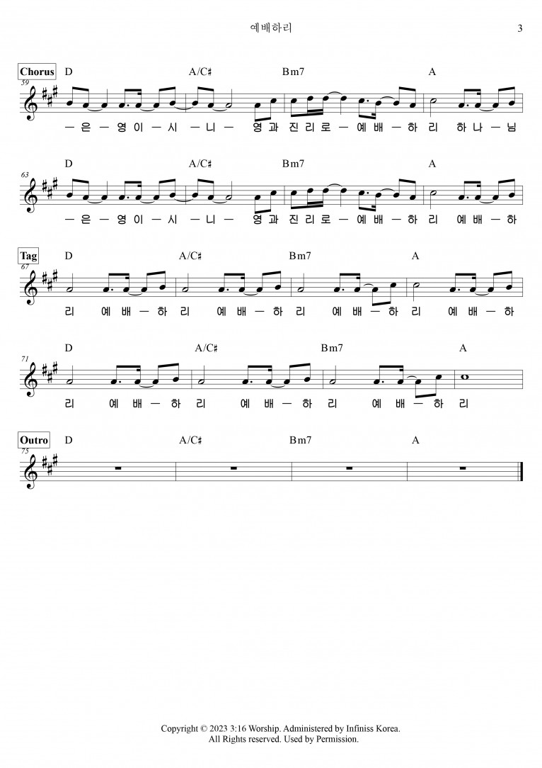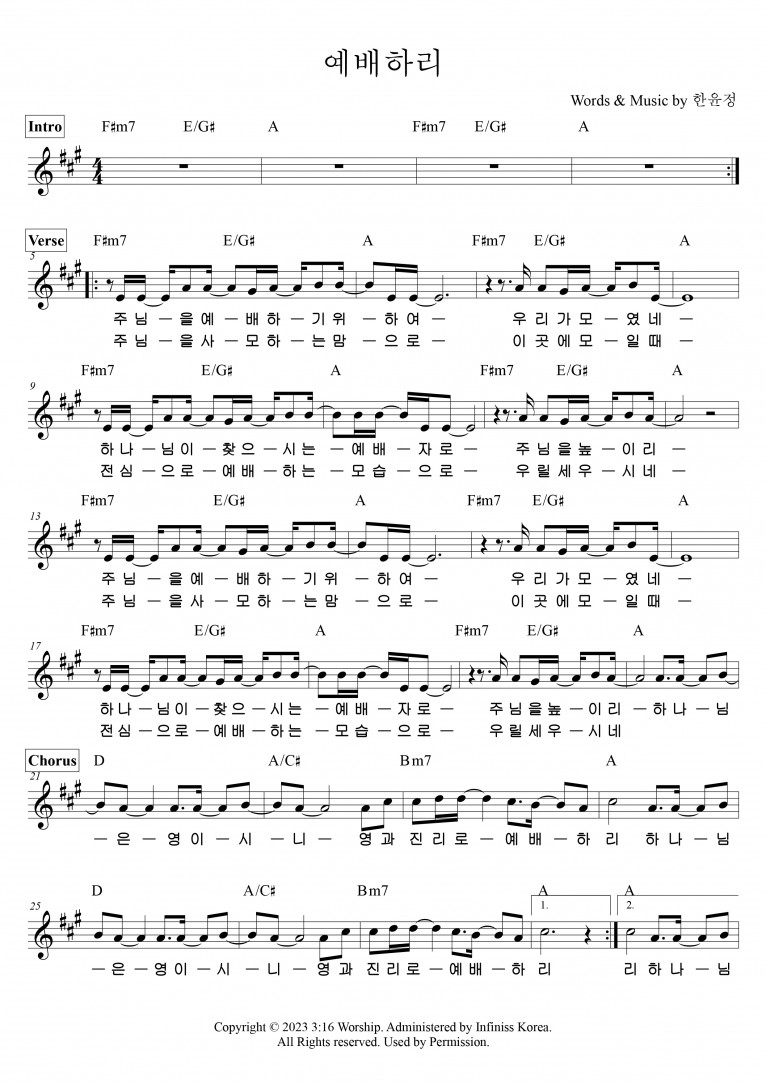 [악보] 예배하리 - 3:16 Worship (예배하리)