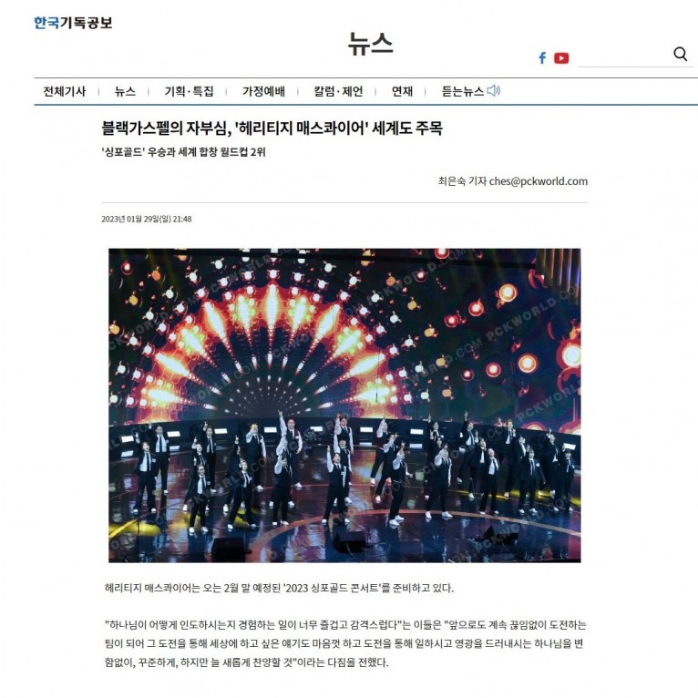 [기사] 블랙가스펠의 자부심, '헤리티지 매스콰이어' 세계도 주목