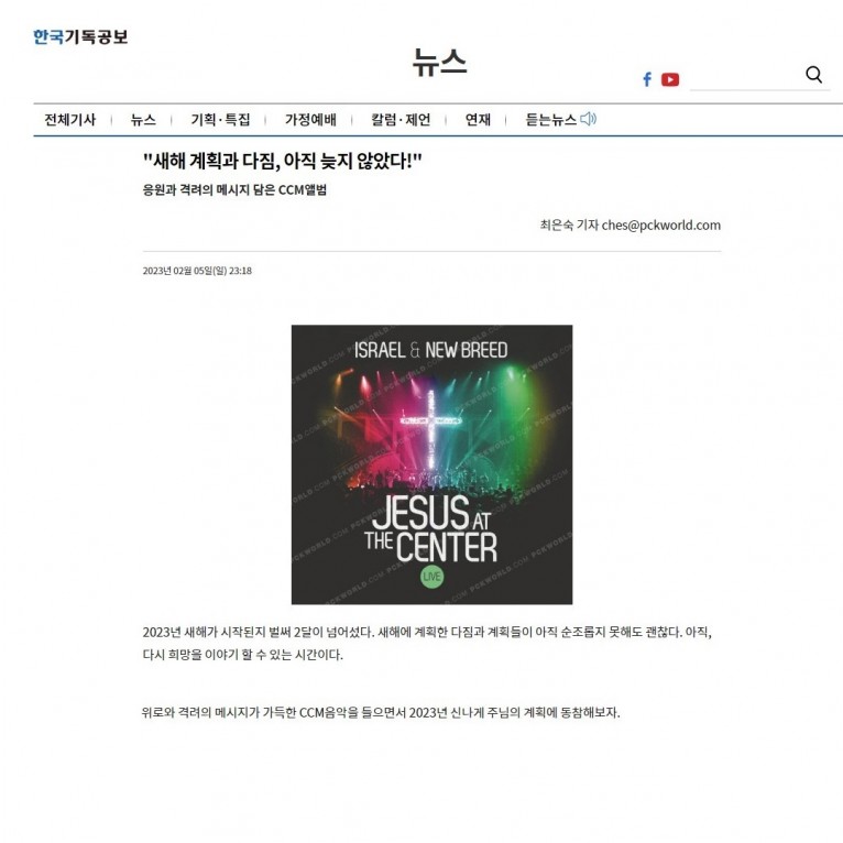 위로와 격려의 메시지가 가득한 CCM음악을 들으면서 2023년 신나게 주님의 계획에 동참해보자.