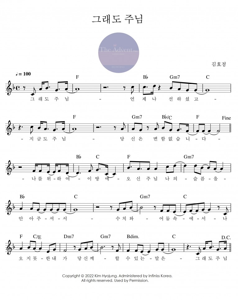 [악보] 그래도 주님 - 김효정 (TheAdvent_lilac)