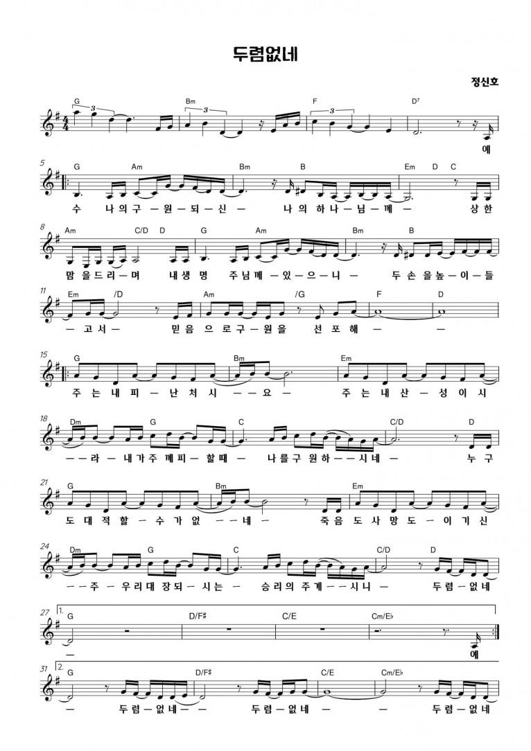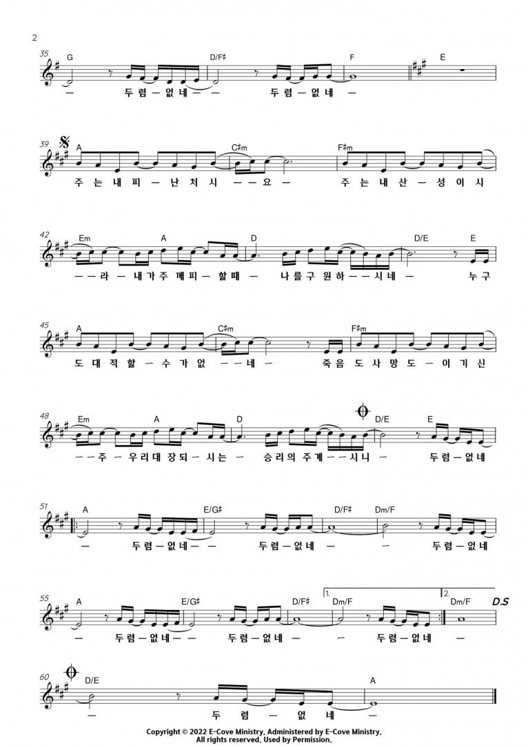 뮤직타임 [악보] 두렴없네 (Feat. 임건학) - E-Cove Ministry (이커브미니스트리)