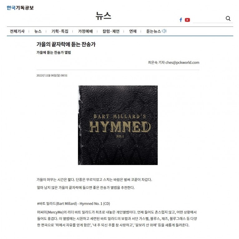 뮤직타임 [기획기사] 가을의 끝자락에 듣는 찬송가