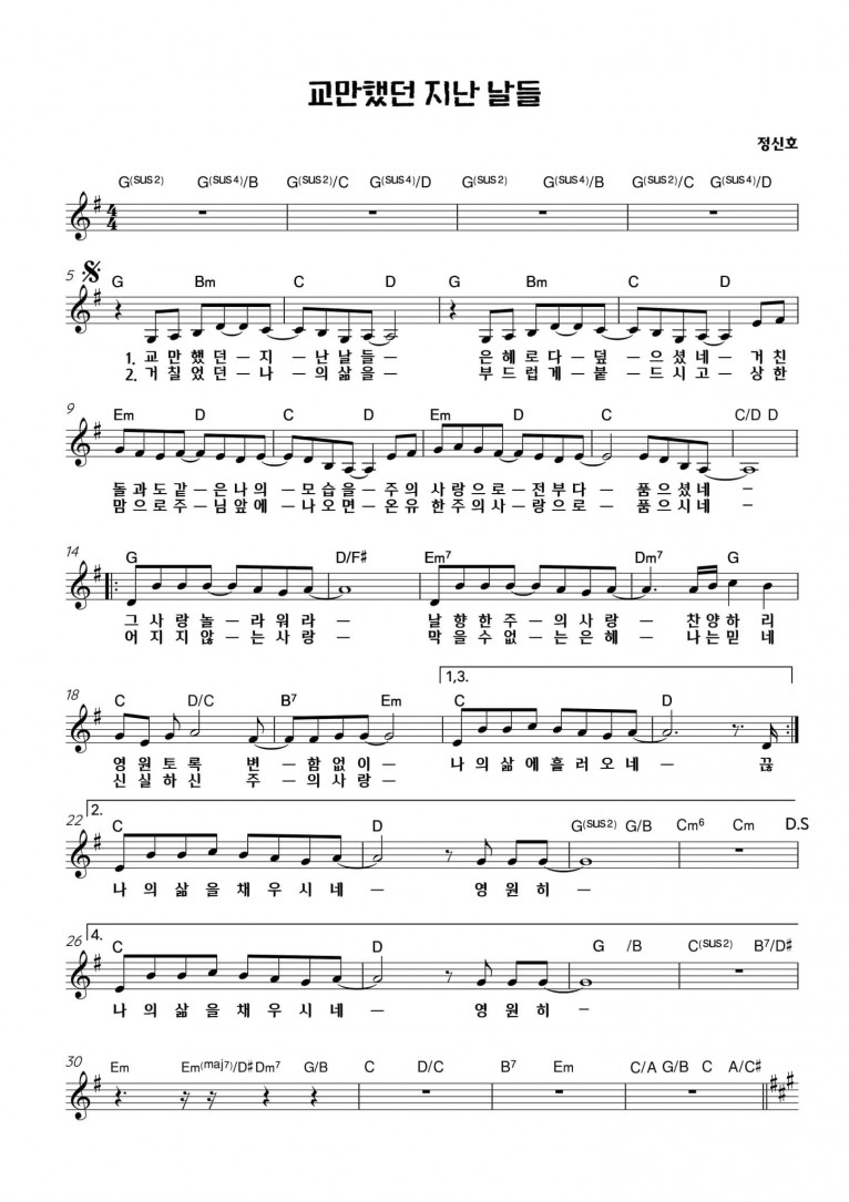 뮤직타임 [악보] 교만했던 지난 날들 - E-Cove Ministry (이커브미니스트리) (진정 부흥을 꿈꾸는가)