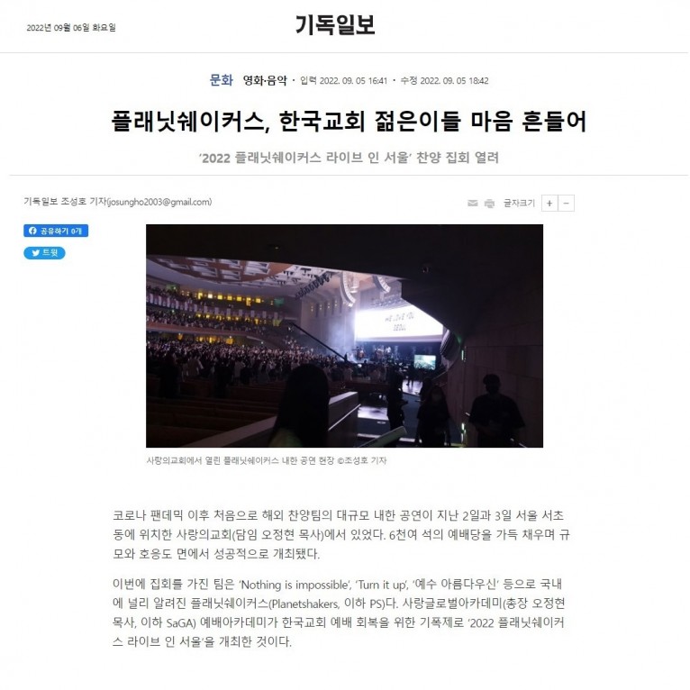 [기사] 플래닛쉐이커스, 한국교회 젊은이들 마음 흔들어