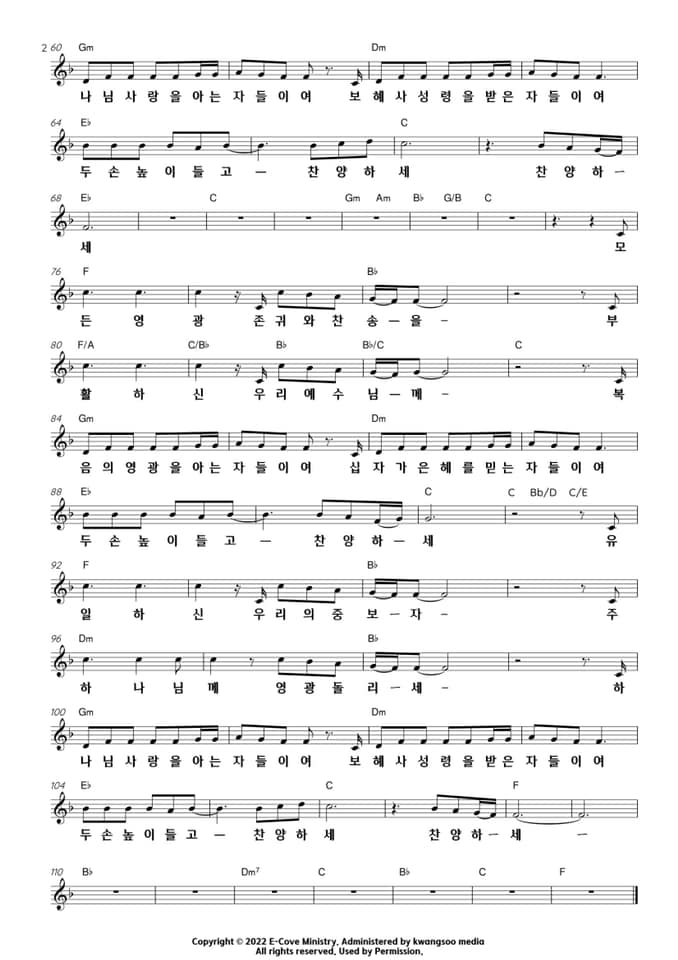 뮤직타임 [악보] 복음의 영광을 아는 자들이여 - E-Cove Ministry (이커브미니스트리) (진정 부흥을 꿈꾸는가)