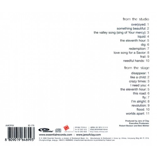 DISC 1 : From The Studio 1. Overjoyed 2. Something Beautiful 3. The Valley Song (Sing Of Your Mercy) 4. Liquid 5. The Eleventh Hour 6. Dig 7. Redemption 8. Love Song For A Savior 9. Frail 10. Needful Hands