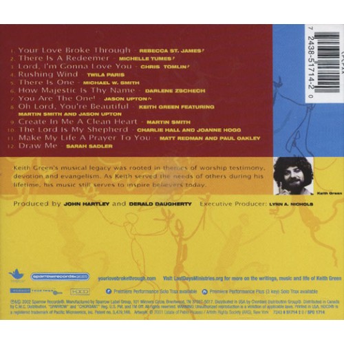 CCM의 전설적인 아티스 '키스 그린' 20주년 추모 헌정앨범 마이클 W. 스미스, 딜리리어스, 달린 첵, 매트 레드먼, 소닉플러드, 레베카 세인트 제임스, 트와일라 패리스, 크리스 탐린, 찰리 홀 등이 참여한 앨범. '정결한 마음 주시옵소서' 등 키스 그린의 유명 예배곡 수록 키스 그린(Keith Green)의 세 번째 추모앨범 YOUR LOVE BROKE THROUGH / the worship songs of Keith Green 키스 그린의 이번 앨범을 소개하면서 특이한 것은 키스 그린의 죽음을 추모하기 위해 이 앨범을 포함해 세 장의 앨범이 발표된 것인데, 첫 번째 앨범은 그가 죽은 지 10주년이 되던 지난 1992년에 CCM의 대표적인 아티스트들이 모여 만든 ‘No Compromise’이다. 스티브 그린(Steve Green), 스티븐 커티스 채프먼(Steven Curtis Chapman), 마이클 카드(Michael Card), 수잔 애쉬턴(Susan Ashton), 페트라(Petra)와 지금은 고인이 된 리치 멀린스(Rich Mullins) 등이 이 앨범에 참여하여 그가 갖고 있었던 사역의 비전과 믿음을 되새기는 기회가 되었다. 두 번째 앨범은 락 계열의 젊은 아티스트들이 참여하여 만든 ‘Start Right Here’로 2001년에 발표되었는데, 키스 그린과 전혀 상관이 없을 것 같은 이 앨범의 참여자들을 보며 그가 미국 CCM계에 얼마나 큰 영향을 주고 있는지를 상상해 볼 수 있다. 오늘 소개하는 ‘Your Love Broke Through’는 키스 그린이 세상을 떠난 지 20주년을 맞아 나온 헌정앨범으로, 그의 곡 중 예배 곡들을 모아놓은 앨범이다. 현재 가장 활발하게 활동하고 있는 미국과 영국의 예배 인도자들과 CCM아티스트들이 참여하여 만들어졌다. 이 특별한 프로젝트는 지난해 예배앨범을 발표하여 우리에게 신선한 충격을 안겨 주었던 마이클 W. 스미스(Michael W. Smith)를 비롯하여 레베카 세인트 제임스(Rebecca St. James), 트와일라 패리스(Twila Paris), 영국 모던락의 선두주자 딜리리어스(Delirious)의 리드싱어 마틴 스미스(Martin Smith)와 Heart Of Worship으로 우리에게 잘 알려진 매트 레드먼(Matt Redman), 호주 힐송의 달린 첵(Darline Zschech), 소닉 플로드와 함께 미국 모던 락을 이끌고 있는 패션의 두 예배 인도자 크리스 탐린(Chris Tomlin)과 찰리 홀(Charlie Hall)등이 함께 협력하여 새로운 세대에게 키스 그린의 음악을 소개하고 있다. 앨범의 타이틀 곡인 ‘Your Love Broke Through’는 최근에 예배앨범을 발표한 여성 락 싱어 레베카 세인트 제임스(Rebecca ST. James)가 들려주고 있는데, 그녀의 끈적끈적한 보컬이 무척이나 매력적으로 다가온다. 수록 곡 중 ‘There Is One’은 키스 그린의 미완성 작품을 마이클 W. 스미스와 마틴 스미스 등이 참여하여 완성시킨 곡으로, 키스 그린의 독특한 곡 분위기가 마이클의 목소리와 하나로 엮어져 환상적인 조화를 만들어 내고 있는데 이 곡 하나만을 따로 듣는다면 마치 마이클의 곡으로 착각할 만큼 소화가 잘 되어있다. 또한 ‘아름다우신 주(Oh Lord, You're Beautiful)’는 키스 그린이 부른 오리지널 곡에 마틴 스미스와 아티스트들이 함께 참여하여 감동을 불러일으키고 있다. 그 외에도 영국의 신예 예배 인도자 매트 레드먼(Matt Redman)과 폴 오클리(Paul Oakley)가 함께 멋진 하모니를 이룬 ‘Make My Life A Prayer To You’, 아이오나의 조앤 호그(Iona-Joanne Hogg)와 찰리 홀(Charlie Hall)이 함께하면서 아이오나의 분위기가 물씬 묻어나는 ‘The Lord Is My Shepherd’등 한 곡 한 곡이 우리에게 키스 그린의 살아있는 메시지를 전해주고 있다. 이 앨범에서 마지막으로 소개하고싶은 곡은 키스 그린의 곡 중 우리 나라에 가장 많이 알려져 있는 곡 ‘정결한 맘 주시옵소서(Create In Me A Clean Heart)’이다. 시편 51편의 말씀을 가사로 한 이 곡에서 우리는 하나님 앞에서 진실하게 자신의 재능과 삶을 드리며 살아갔던 한 사람의 예배자를 만날 수 있다.