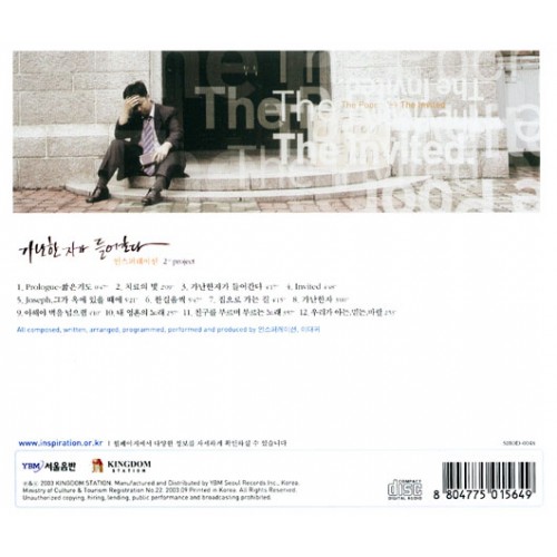 1. Prologue - 짧은 기도 2. 치료의 빛 3. 가난한자가 들어간다 4. Invited 5. Joseph, 그가 옥에 있을 때에 6. 한걸음씩 7. 집으로 가는 길 8. 가난한자 9. 아해야 벽을 넘으렴 10. 내 영혼의 노래 11. 친구를 부르며 부르는 노래 12. 우리가 아는,믿는, 바랄