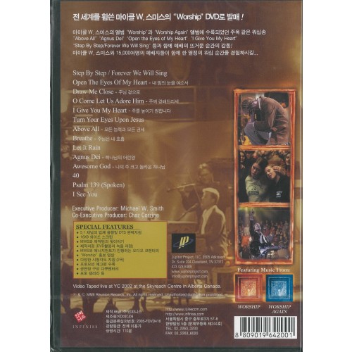 마이클 W. 스미스의 앨범 'Worship'과 'Worship Again' 앨범에 수록되었던 주옥같은 워십송 "Above All", "Agnus Dei", "Open the eyes of my heart' , "I Give you my heart' 'Step by step/Forever We will sing'등과 함께 예배의 뜨거운 순간의 감동!